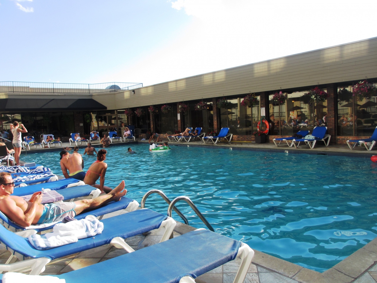 欧米の方は部屋で水着に着替えて、バスローブをはおってプールに来ていました。
