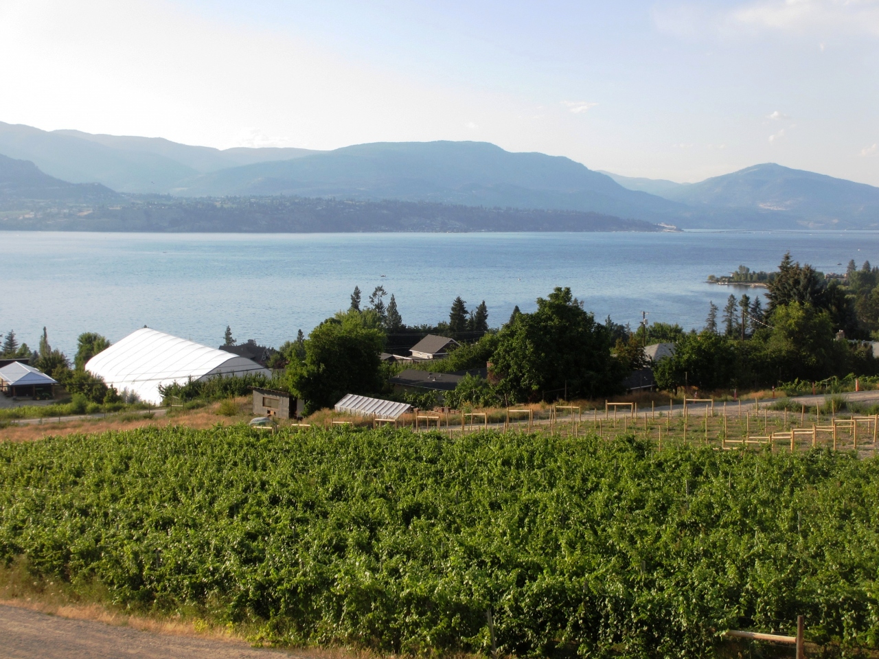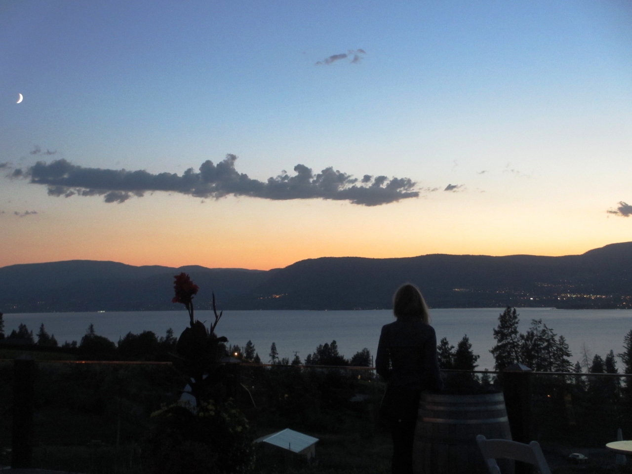 丘の上に建っているので、ブドウ畑越しに、オカナガン湖に沈む夕日を眺められる絶好のロケーションです。