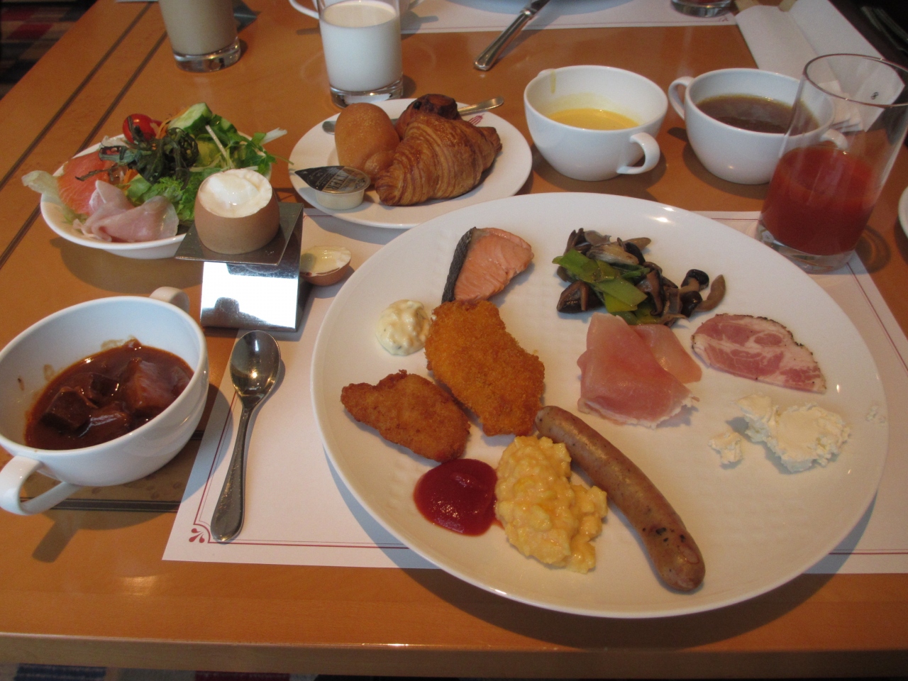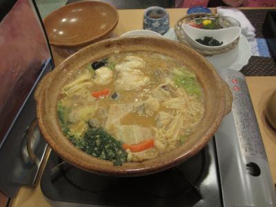 アンコウ鍋付きのハーフバイキングの夕食です。