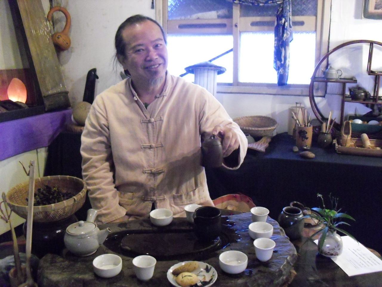 茶仙人と言われる周さんのお店です。100年以上の歴史があるそうです。周さん自らが栽培し、製茶したお茶がいただけます。特に、こちらでしかいただけない「月光茶」はとてもおいしい!渋み・苦味がなく、カフェインの少ないお茶だそうで、とてもさわやかでした。ご相談すれば営業時間外の午前中から開けてくださいます。奥様とお二人で大歓迎してくださること間違いなし。お茶代として一人200元。手作りのお菓子とお茶でのんびり2時間過ごしました。笛の演奏や奥様のマッサージ等の歓迎があります。