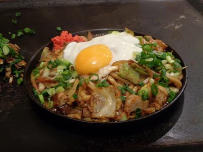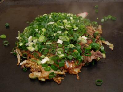 尾道焼き」は、普通の広島風お好み焼きと違い、イカ天、砂肝、蒸麺を使用しているのが特徴。