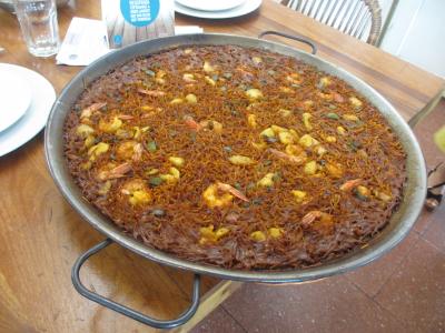 店内には、おいしそうなシーフードがてんこ盛りです。が、メインはフィデウアで、あんなビジュアルを見せつけておいてシーフードが出てこないなんて残念なツアーランチです。「フィデウア」は普通においしく、アリオリを付けるとさらにおいしくなりました。私たちは、みんなで「そばめし」のようだねと言いあいました。