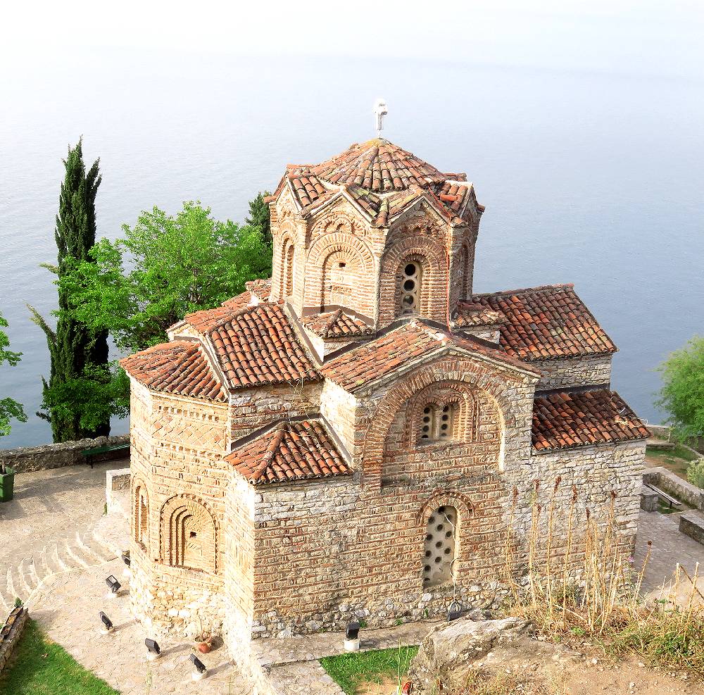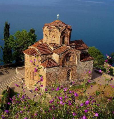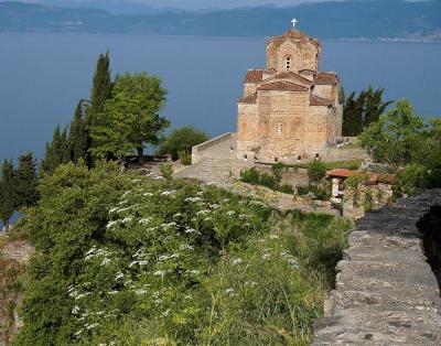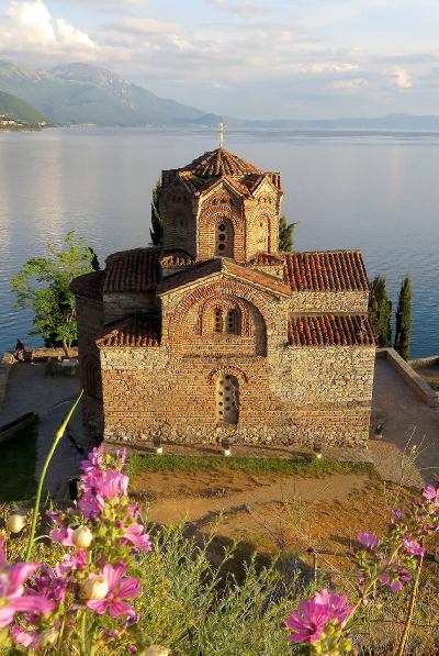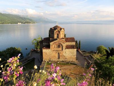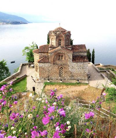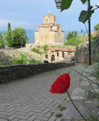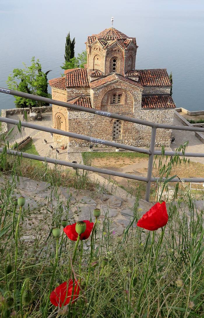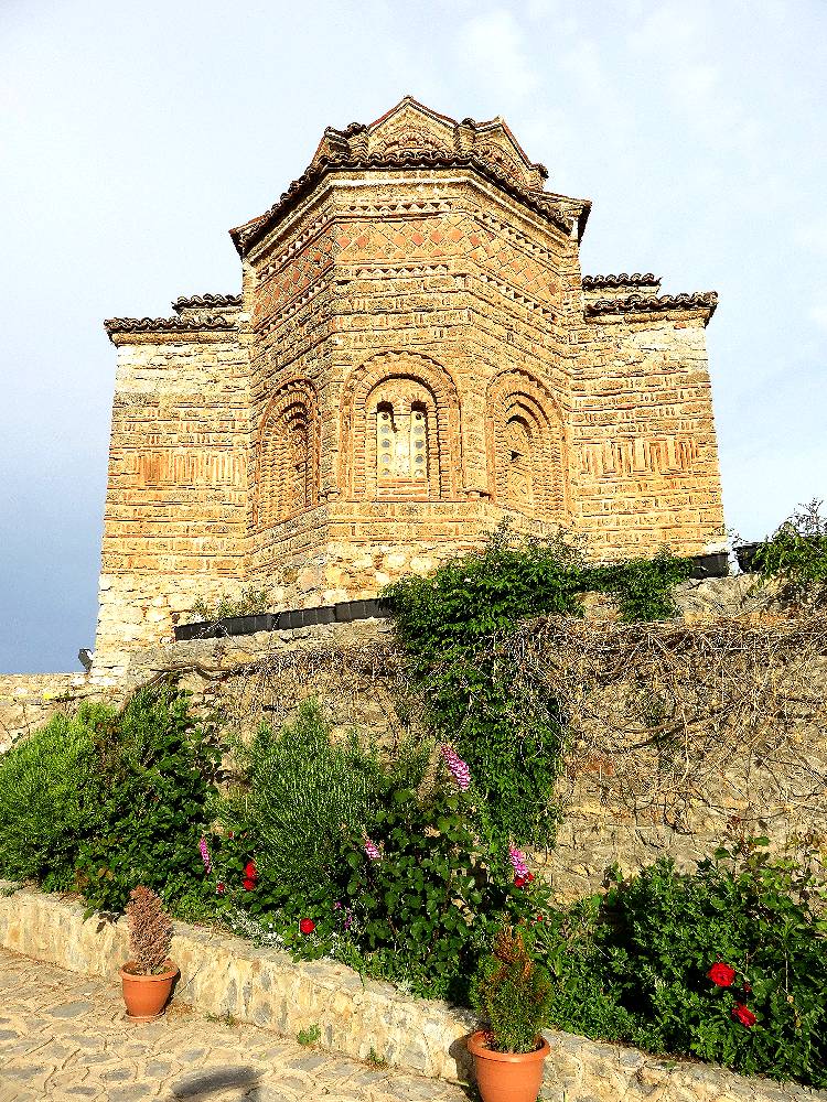 マケドニアのリゾート地、オフリドにある多くの教会の中でも、もっとも観光客に人気のある岬に建つかわいい教会。オフリド湖をバックにひっそりとただずむ風景はおなじみだ。私達は2015年の5月末、バルカン半島ドライブ旅行の主たる目的地としてオフリドを訪れた。宿から歩いてすぐのところだったので、夕方と早朝に訪れることができた。夕方は人も多く、入り口側が陰になってしまって、いい写真が撮れなかった。翌日再び人のいない早朝に訪れたら、幸い掃除をしている人しかおらず、神秘的な教会のたたずまいを撮影することができた。夏の観光シーズンは混むので、その時期を外して、朝の時間帯に訪れるのがベストだと思う。なお教会内部に入らなければ無料だ。