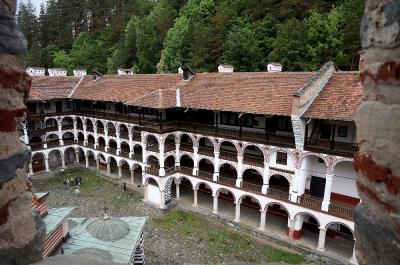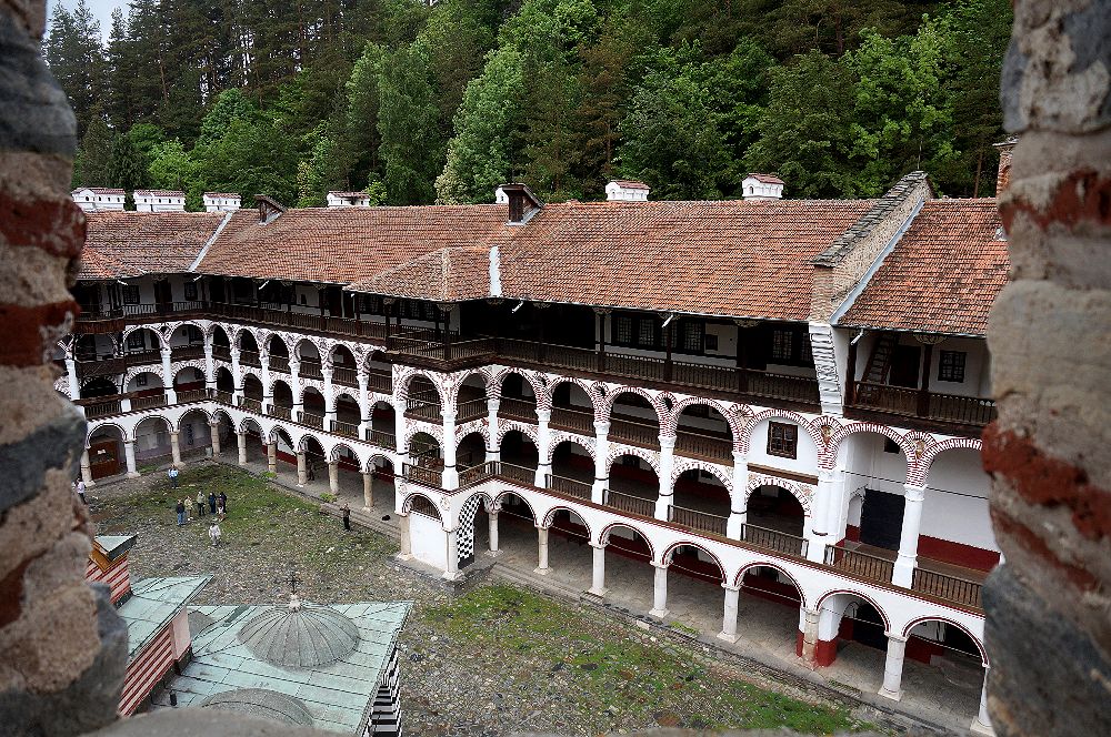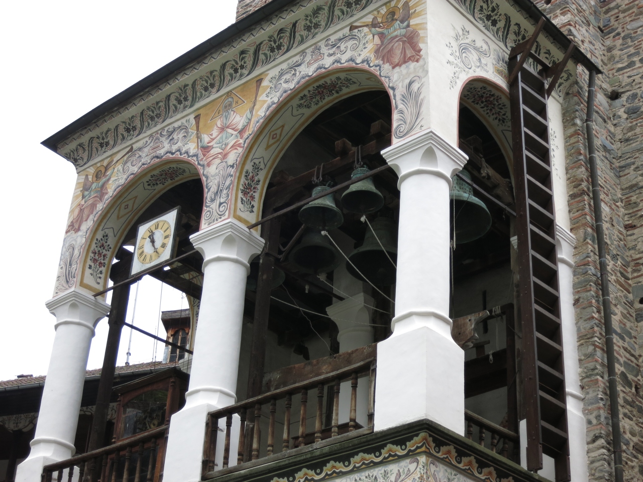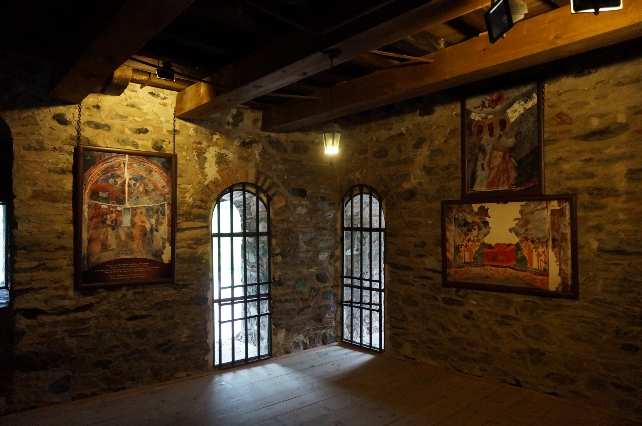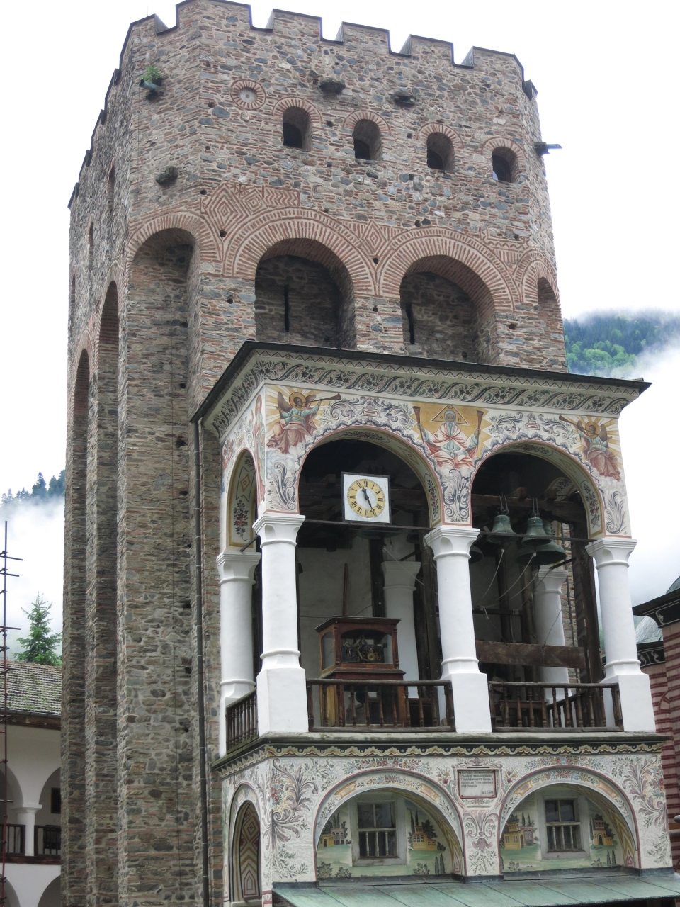 塔のベランダからリラの僧院を撮影しようと思い、塔のそばの事務所で入場料3レヴ(実際は5レヴだったかも)払って上りましたが、残念ながら塔の外には出れず、小さな窓からの撮影しかできませんでした。1833年の大火災にこの塔だけが消失を免れたので、もしかすると古くて危険になり、ベランダに出ることを禁止したのかもしれません。塔の中は古いフレスコ画のレプリカが展示されているだけで、大して見るものもありませんでした。これから見学される方は、塔の外に出れるかどうかチケットを買う前に確かめてから上ることをお勧めします。