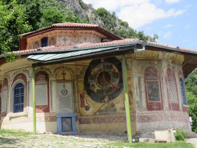 ベリコタルノボから北に6キロ離れたヤントラ川によってできたDervent渓谷ぞいの丘の上にひっそりとたたずむ小さな修道院。14世紀に最初の修道院が建てられたが、オスマントルコ軍の侵攻によって破壊され、19世紀に今のところに再建されました。2015年5月にルセからベリコタルノボに車で向かう途中、本道から狭い未舗装路の山道に入りたどり着きました。途中暑いので上半身裸でふうふういいながら山道を歩いているグループをみかけたので、車でなければ、途中までバスで来て、山道を歩いて登るしかなく、気軽に来るわけにはいかなさそうです。入場料(2レヴ(140円))を払い入場すると、中は色鮮やかなフレスコ画で埋め尽くされていました。内部のフレスコ画もすばらしかったのですが、入り口近くに淡い色調で描かれた天使の絵はロマンチックでかわいく、印象的でした。ルーマニアでさんざんフレスコ画を見てきましたが、まったく異なる絵でした。修道院の建っているところからはテーブルマウンテンのような山塊が見え、見晴らしが良く気持ちのいいところでした。修道院内部の撮影が禁止されているところが多い中ここは撮影できました。