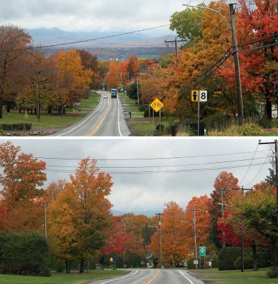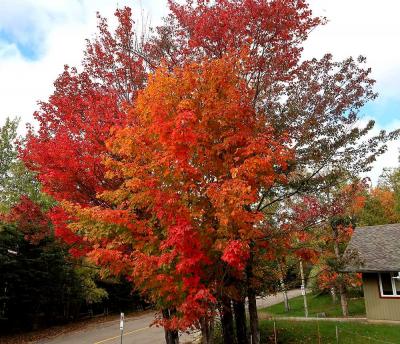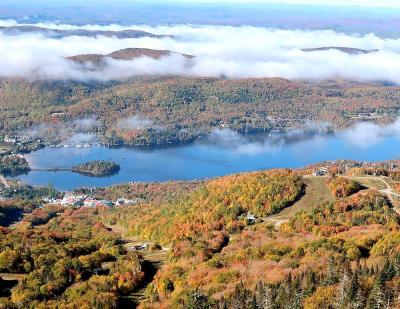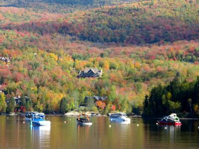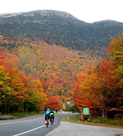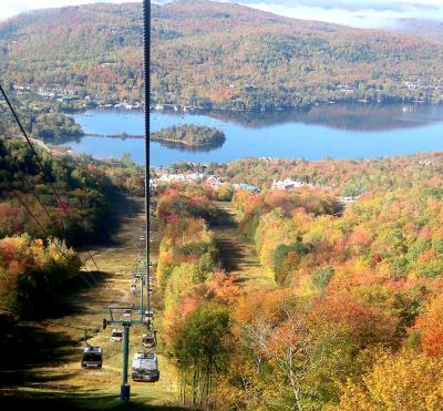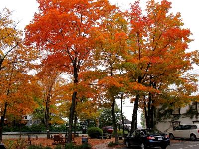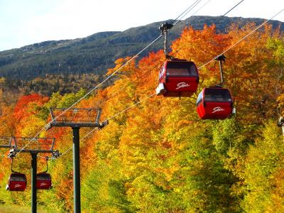 ストウは、映画サウントオブミュージックの主人公・マリアとトラップ一家が移り住んだ地として有名です。このリゾートは、そのストウの町の西にあるマンスフィールド山麓に広がるスキーリゾートです。ストウはバーモント州の屈指の紅葉の名所ということは知っていたのですが、ストウの中でもこのリゾートの紅葉は特に素晴らしく、とても見ごたえがありました。テレキャビンで山頂まで上ることができ、そこからのリゾート全体の眺めもすばらしかったです。もっとも、その料金は一人31ドルとかなり高価でびっくりしました。リゾートの中を通る108号線をさらに西に走ると、峠越えの道になりますが、この沿道沿いの紅葉も素晴らしいものでした。