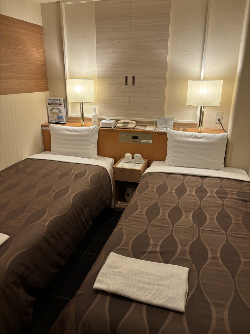 今回はツインの利用でしたが、ベットはセミダブル、お部屋も広くスーツケースを広げても余裕があります。