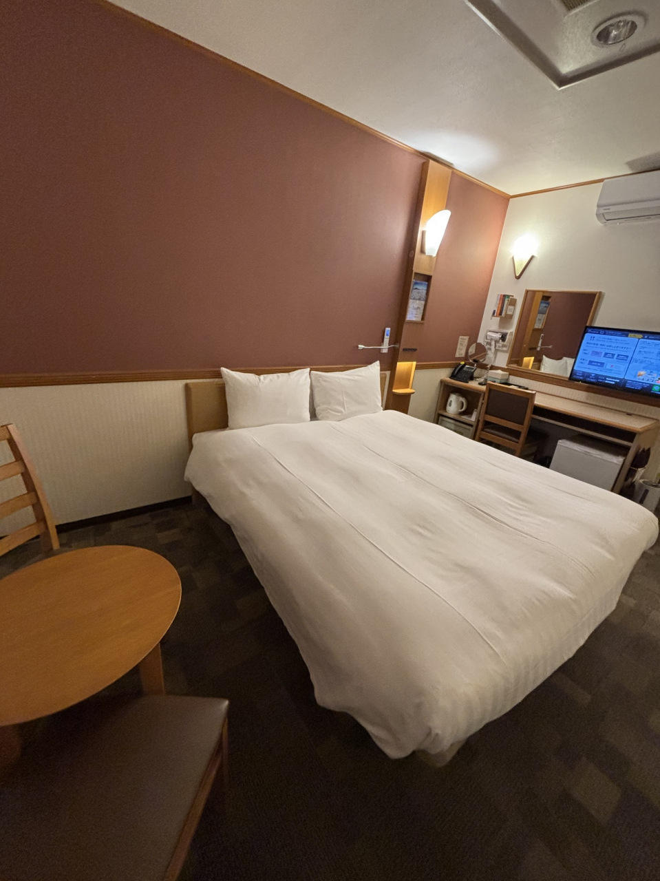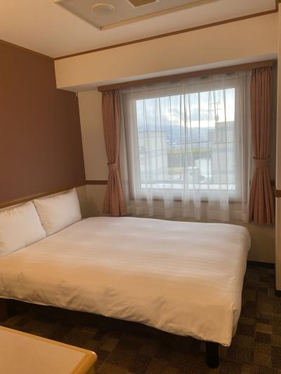 室内は全国の東横イン共通であろう定番間取りです。でもダブルルーム2名利用、土曜日宿泊、朝食付きで8820円はコスパ最高だと思います。