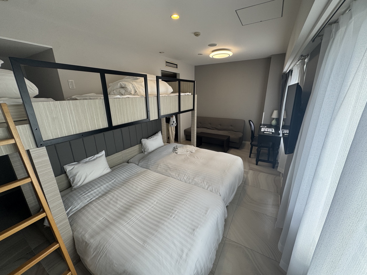お部屋はスーペリアキング+バンクベッドで遊び心がある部屋でした。
