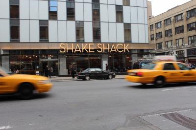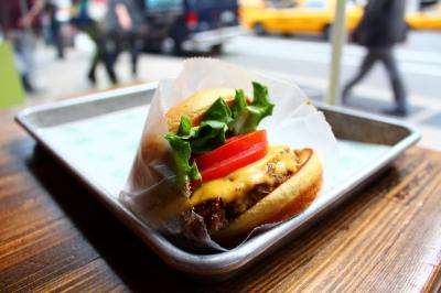 さて、荷物をおいて腹ごしらえ♪当時から流行っていたシェイクシャックのハ...