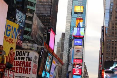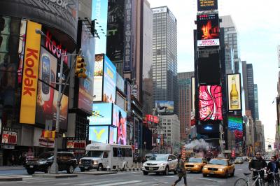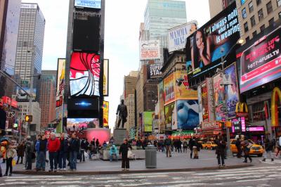 TimesSquare四方八方ネオンと派手な看板で埋め尽くされ、アメリ...