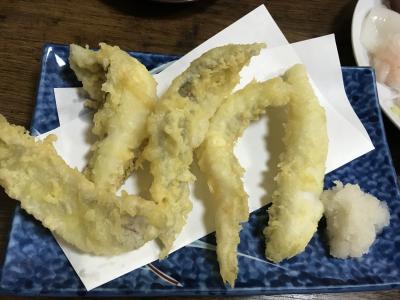 富山といえば! 海の幸! とうきうきして予約してゆきました。日曜日なのに、すごくにぎわっていた。座敷はほぼ満席。食事は、刺身の盛り合わせとゲンゲの天ぷらと白エビのフライをオーダー。刺身:白エビの刺身を初めて食す。甘くてとろける。最高。ただ、全ての刺身が柔らかい。しめさばは匂いが少し・・・普段地元で食べている刺身の方がおいしいなあ。 ゲンゲの天ぷら : あっさりしているが、にゅるにゅる感が個人的には好きではない。 白エビのフライ: 量も多く安くおいしかったです。