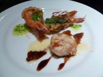 4.海老と帆立のグリル 海老はバジルソース 帆立はバルサミコ酢ソース