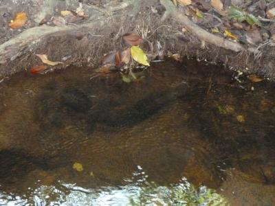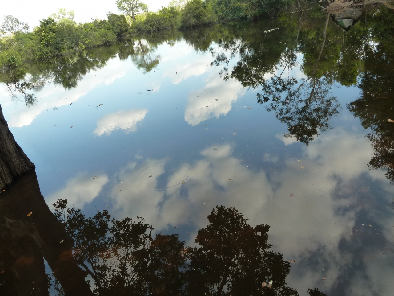 遺跡に着くまでは長~い道があります。そこには池が数個ありました。タンニンという