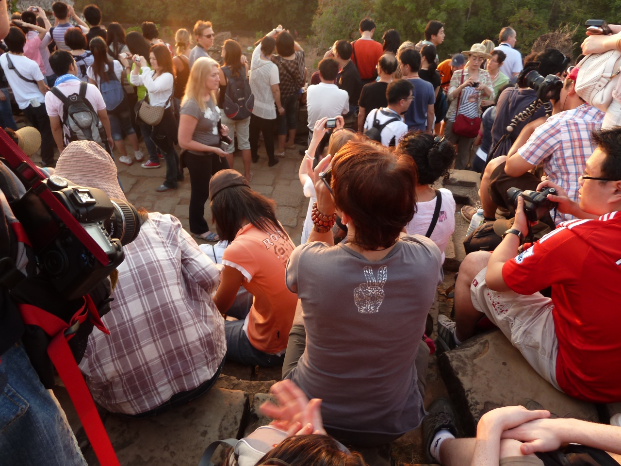 昨日はプレ・ループからの夕陽で、今日はここ。17時に入場できなくなるのにギリギリに到着。間に合った〜。山をぐるぐる上る感じで頂上へ15分くらい。一番人気の夕陽ポイントのようで人が無茶クチャ多い。横にいる中国人の女性がどんどん押してくるのでヤになって逃げた・・・どんどん人は増えてゆきます。わいわい夕陽鑑賞って感じ。いよいよsunsetです。わー、きれい☆どんどん沈みます。その間はさすがにみんな黙っています。陽が落ちてしまうとやはりパチパチと拍手が。万国共通なんですかね? 落日を上で見ると、その後の軽い下山が暗くなります。最後麓に着くときは結構真っ暗でガイドさんを探すの苦労しました。懐中電灯があればベターです。今日もお陰様で綺麗な夕陽を拝むことができました。感謝 手手