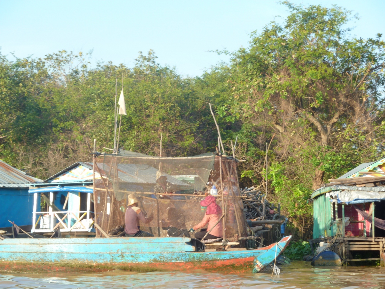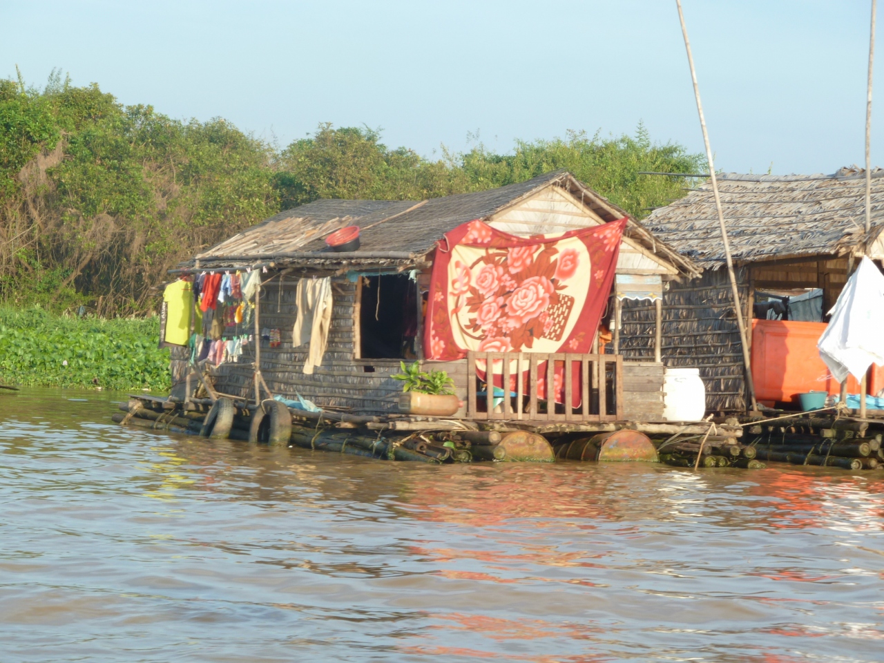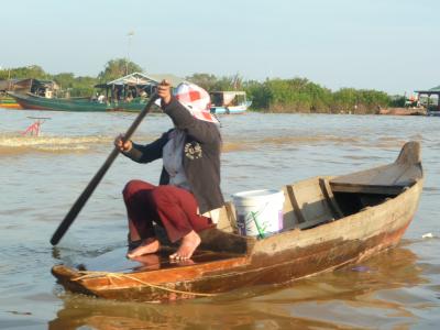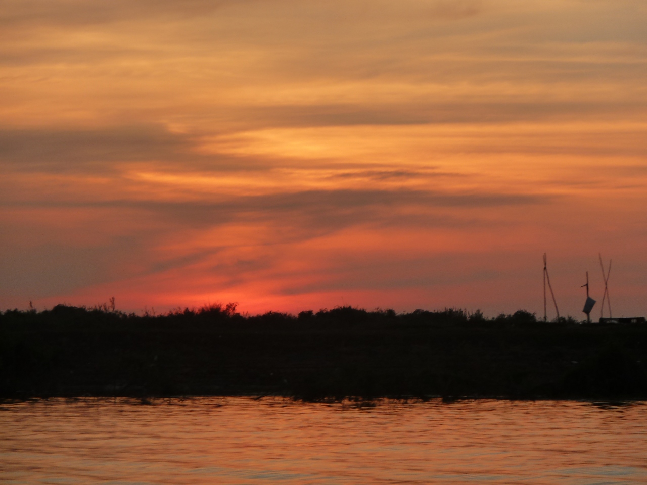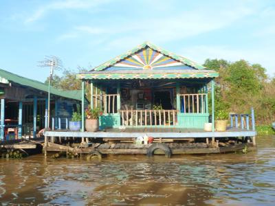ゲストハウス近くの旅行代理店で頼みました。19ドル。戦争記念館(?)とアートセンターとトンレサップ湖ツアーです。16時20分。湖到着。結構立派な入り口があって桟橋があり船に乗ります。それぞれ役目あるボートが浮いていて、小学校・教会・個人住宅・ガソリンスタンドなどなど。蚊帳のようなものに小魚を入れて洗濯物はたくような物で、バシバシたたいて失神させるんだそうな。17時sunsetになりつつある。昨日は山の上からで今日は湖の上で。贅沢やな〜。日常性格が垣間見えて興味深かったです。