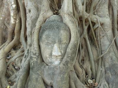 よくアユタヤのパンフなどに登場されている仏様。締め殺しの木に本気で締め殺されそうになっておられます。写真を撮る人が無茶苦茶多いんですけど、注意書きによると、