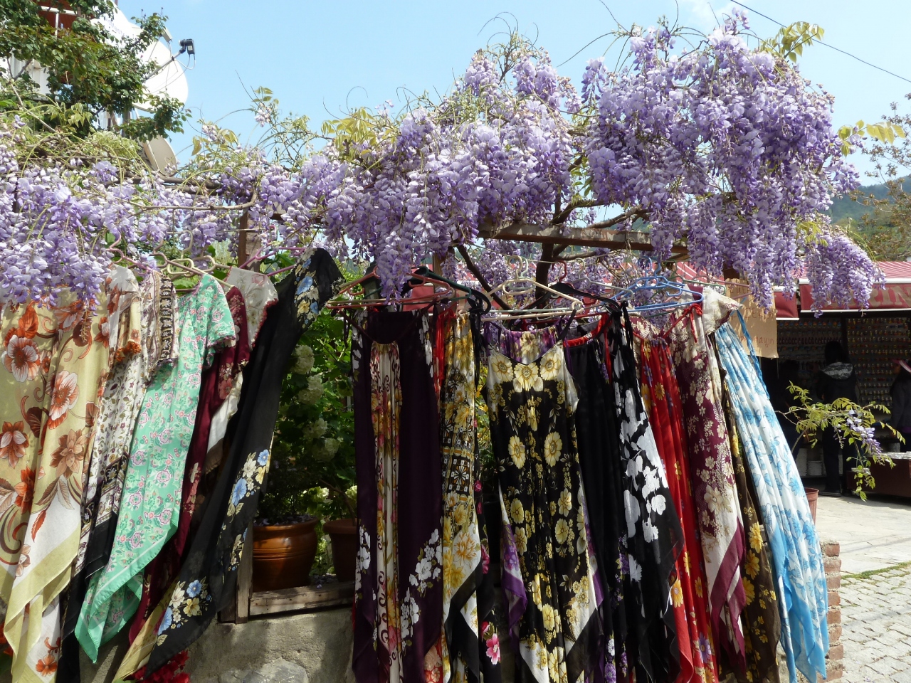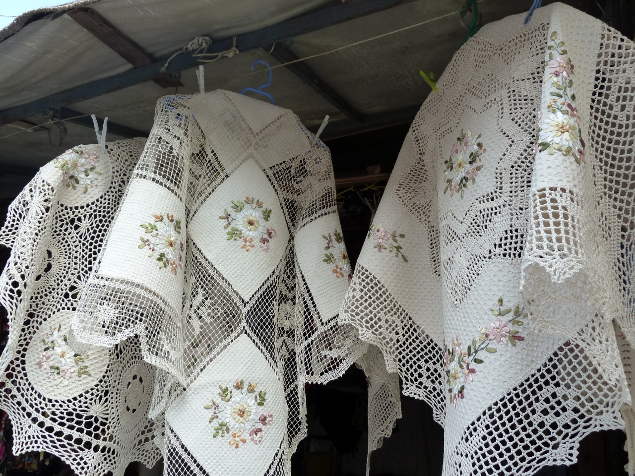 お土産物屋さん、レース雑貨、手編みの毛糸の雑貨屋さん、ハーブ屋さん、オリーブ、