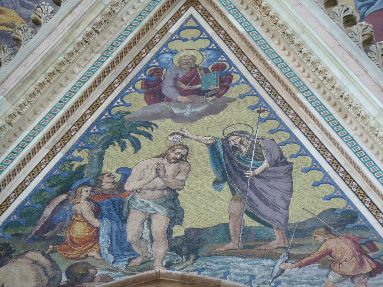 「聖母マリアの被昇天」に捧げられたイタリアゴシック建築を代表する教会。1290年に「ボルセーナの奇跡」の聖遺物を奉るために建設が始められ1600年に完成。モザイクの製作は18世紀まで続けられた。