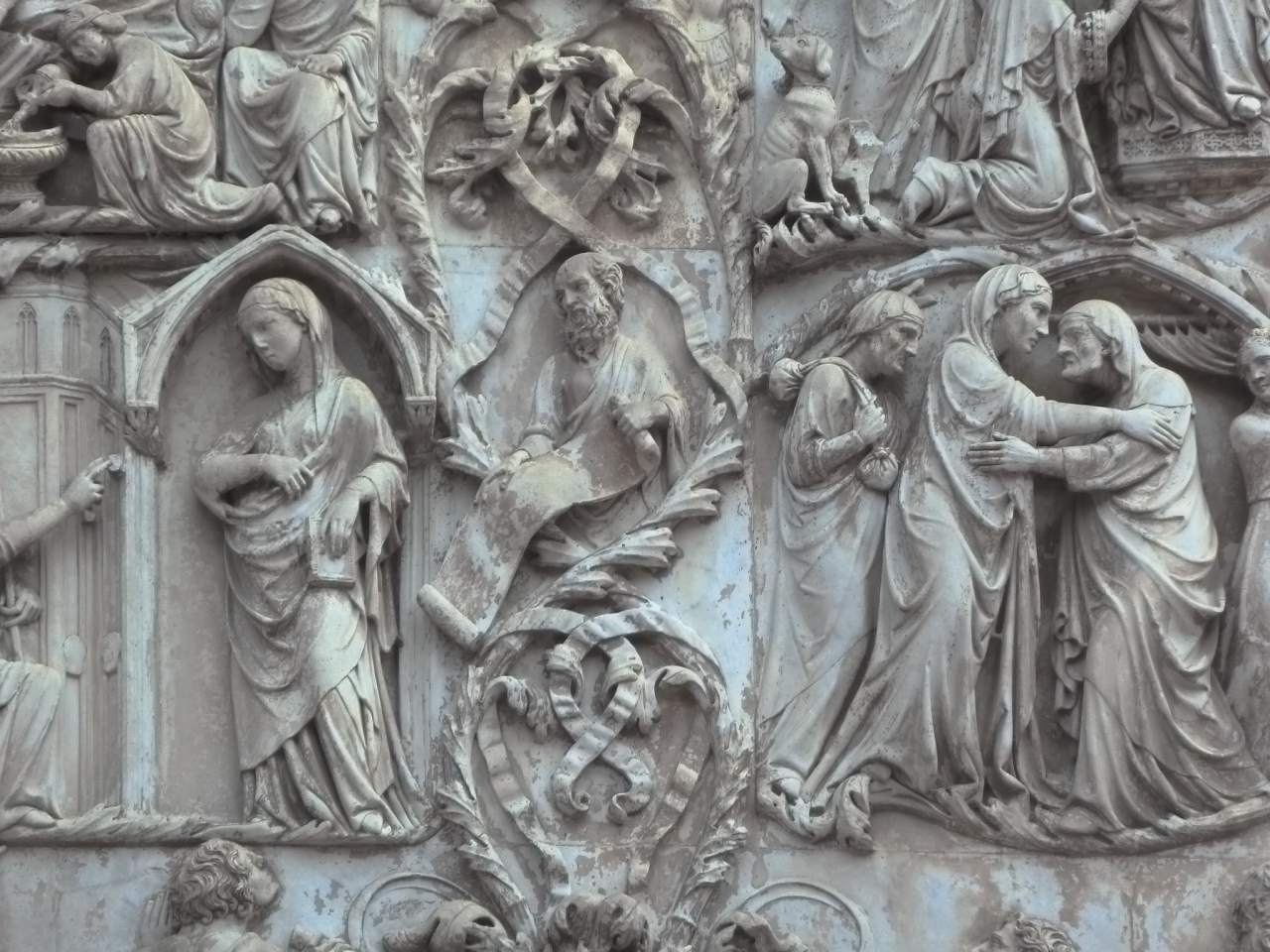 ファサード(正面デザイン)の設計は、シエナ出身のロレンツォ・マイターニによるもの。そのためシエナのドゥオーモともよく似ている。