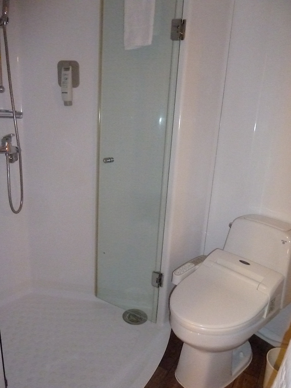 室内設備:ベッド、テレビ、ポット、コーヒー、紅茶、紙コップ、貴重品ロッカー、簡易ロッカー、シャワー(狭くて少し使いにくい)、洗面台