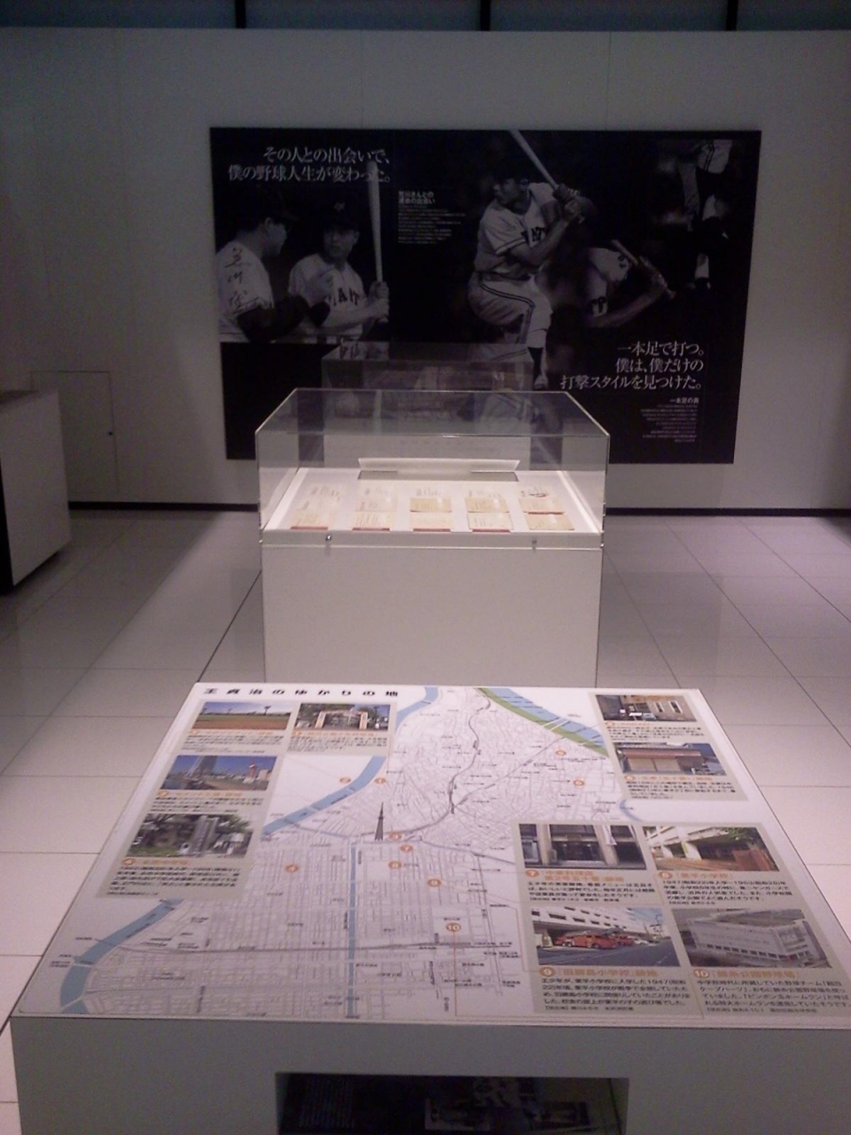墨田区総合体育館のメインロビー(2F)にあります。墨田区の名誉区民である王貞治さんが生まれ育った墨田区ゆかりのスポットなどを写真やユニフォームの展示を含めて展示紹介しています。子供時代の王さんは、やっぱり目が大きくてかわいいです。