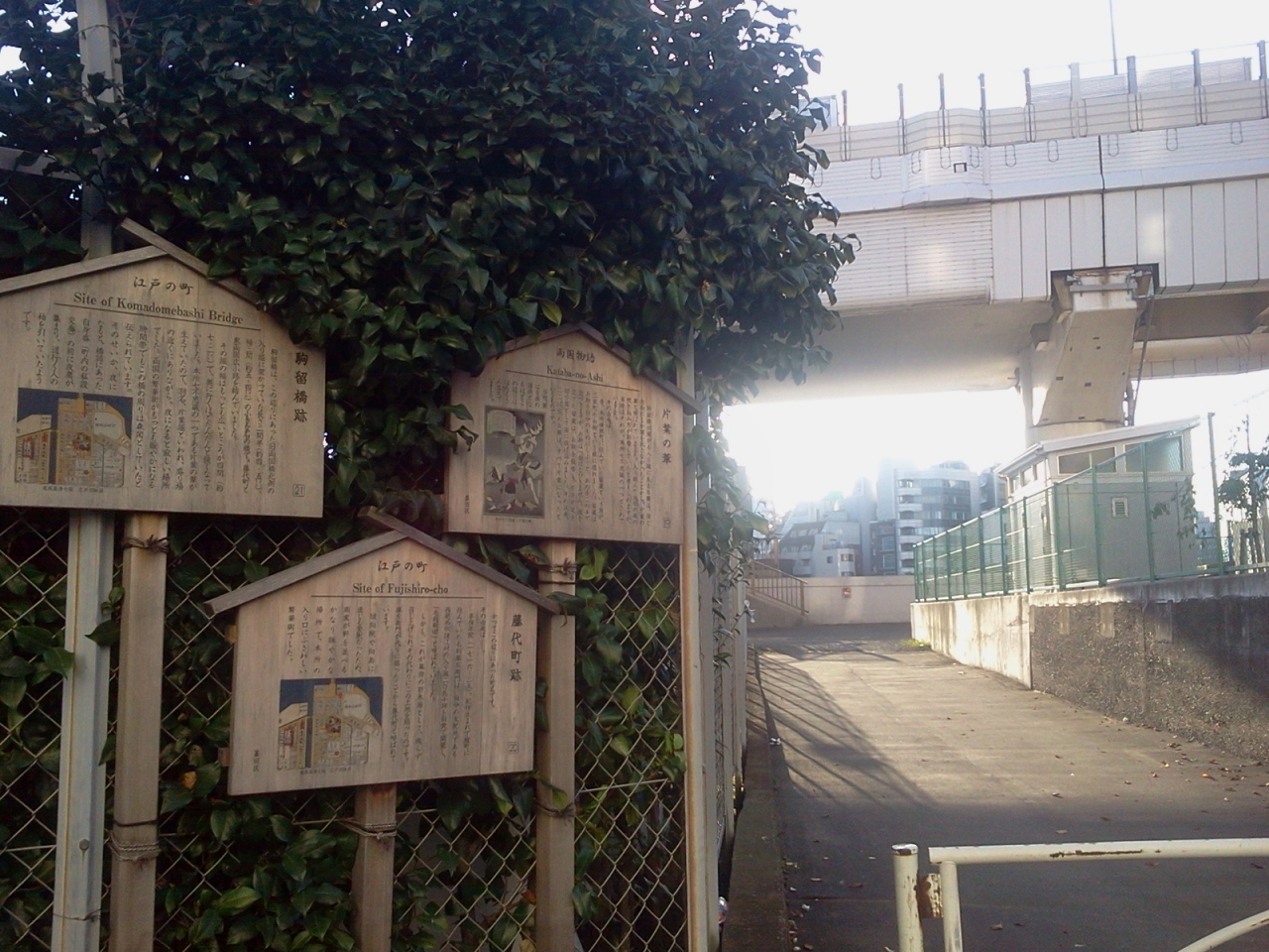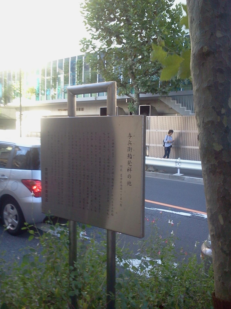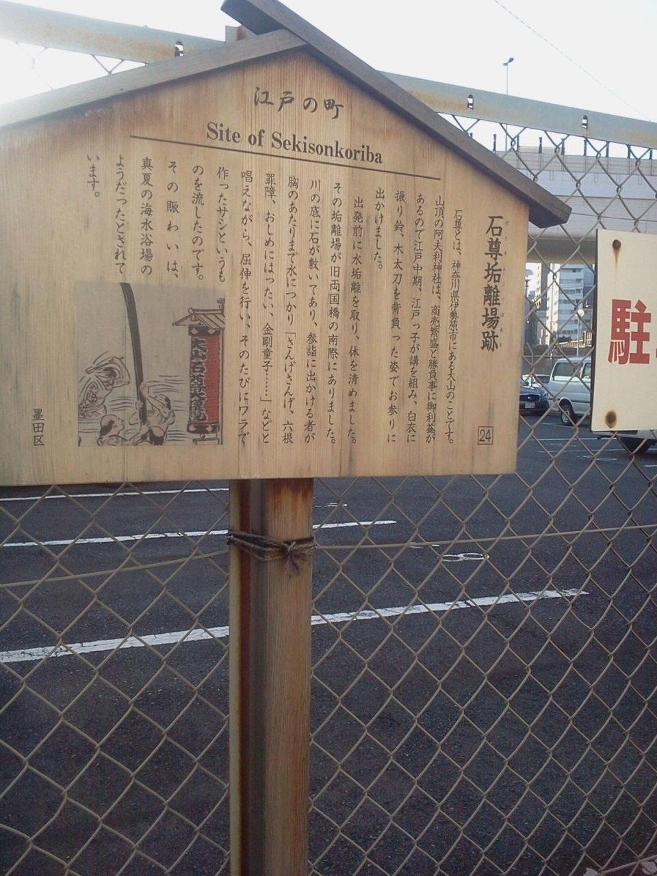 吉良邸討ち入り後、泉岳寺に向かう前に四十七士が休息をとったとされる場所です。いまとなっては、高速の高架下に駐車場があるだけで、当時をしのぶものは全くありません。とはいえ、血塗られた戦い後、両国橋の東詰めに集結した忠臣蔵の男たちはどんな思いで隅田川を見つめていたのでしょうね。。。