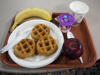 朝食はちょっと寂しかったけど、ワッフル焼き機が有って、焼きたてを食べることができたのでよかったです。