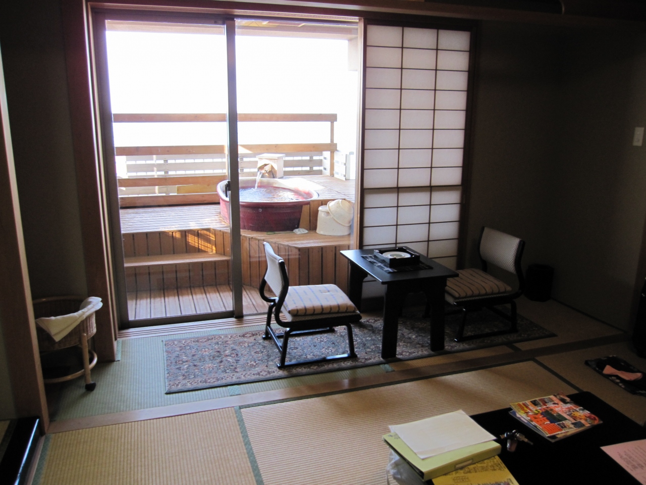 部屋にはジャグジー風呂と露天風呂付き。日本海の眺めがとてもよかったです。他の方が書かれてるように、海岸から見えるんじゃないかと思いましたが。