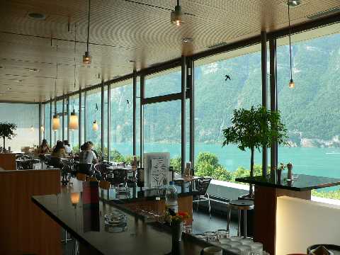 スイスのチューリヒから3号の高速道路で東に向かうとWalen seeという湖がありますが、そのサービスエリアのレストランがとても景色がよかったです。