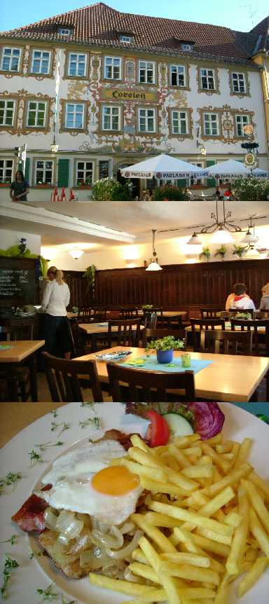 シュニッツェル(ドイツ風カツレツ)に目玉焼きをのせたCoburger Kurstchenと(9.50EUR)と、Frankenphannleというコーブルグソーセージとニュルンベルグソーセージの盛り合わせ(6.90EUR)も頂きましたが、どちらもおいしかったです。