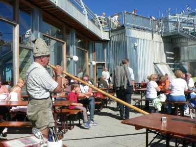 ドイツで一番高い山のツーグシュピッツェ山頂にあるレストランです。周りの山々が眺められて景色が最高です。チロルの音楽の生演奏もあって雰囲気が良いです。