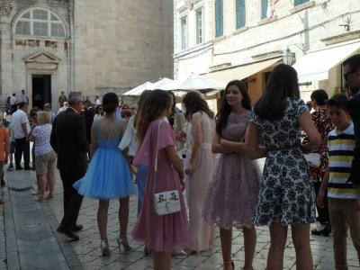 外に出ると正装してる人達がたくさん!背の高い人がクロアチアには多いので...