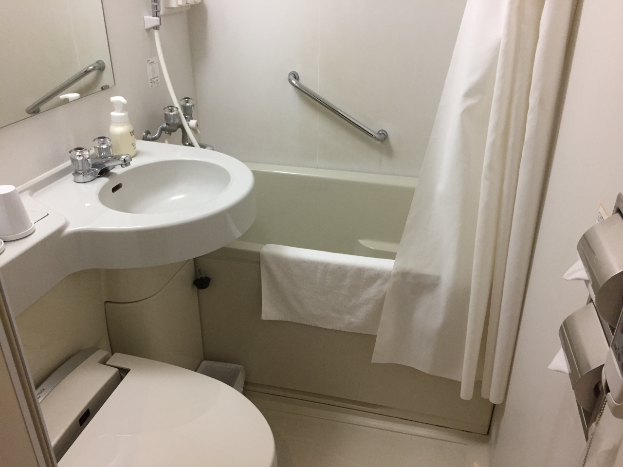 - ユニットバスにトイレと洗面。その狭さは仕方ない。