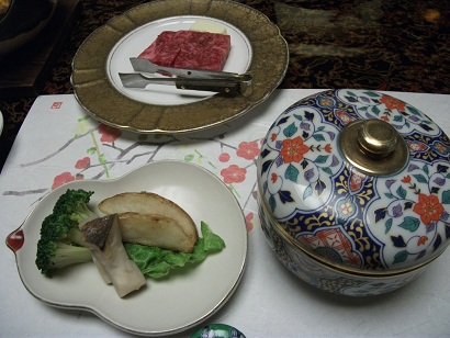 夕食は能舞台で能を鑑賞しながらいただきました。