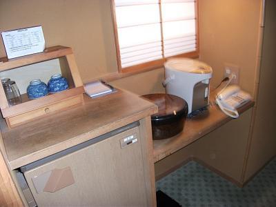 和室も落ち着いた雰囲気で、冷蔵庫や熱いお湯の入ったポット・コップと湯のみ、二種類のお茶葉、きゅうす、など、いつでも好きな時に飲めるように、心配りの行き届いた品が置いてありました。