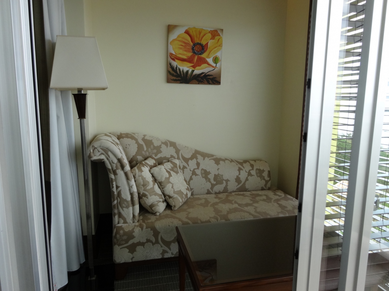 かなり期待していたのですが、残念ながらシングルのお部屋はバスルームにしか窓がないので、椅子に座ってのんびりと眺めることは出来ませんでした。