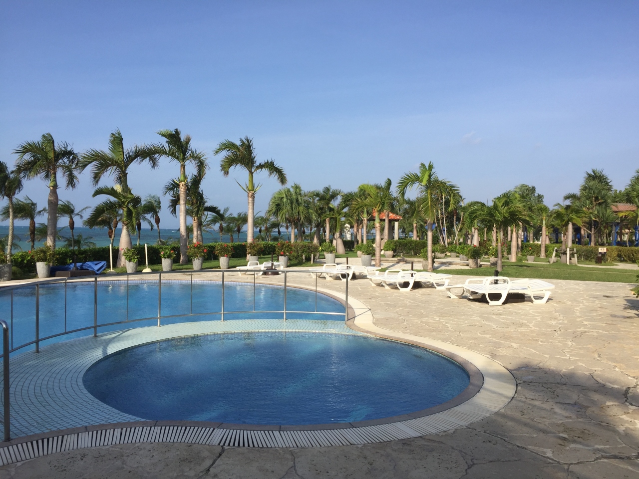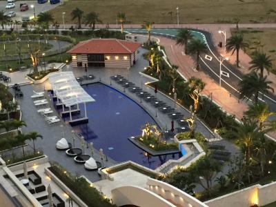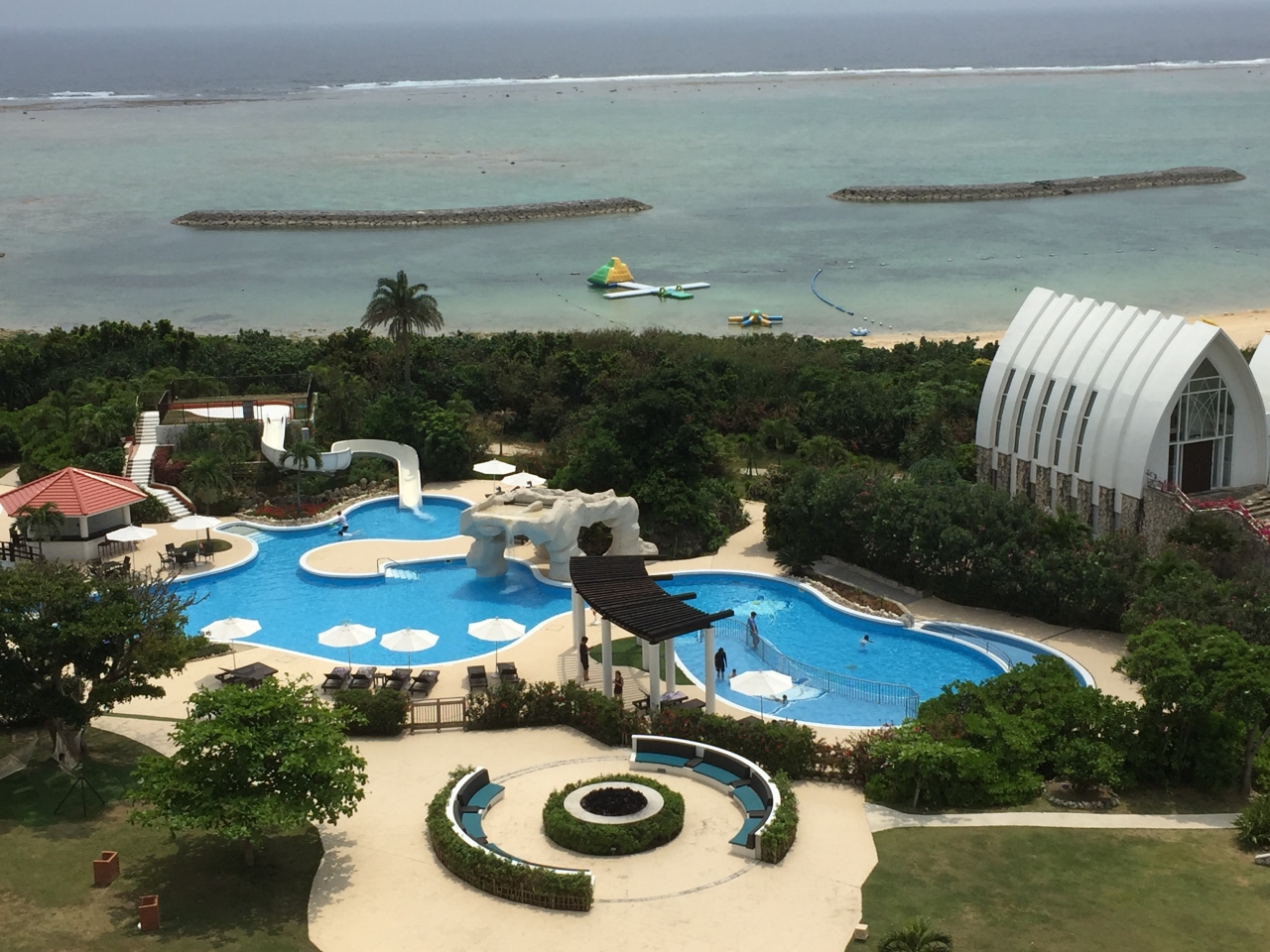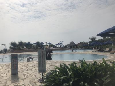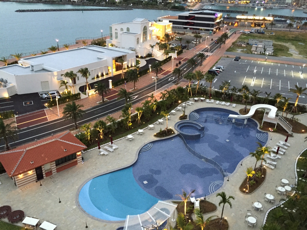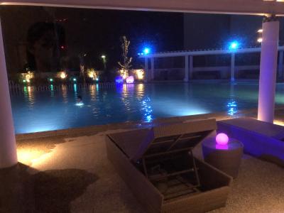 大きなプールは密を避けるため22時まで泳げるそうで、夜にはライトアップされて綺麗でした。