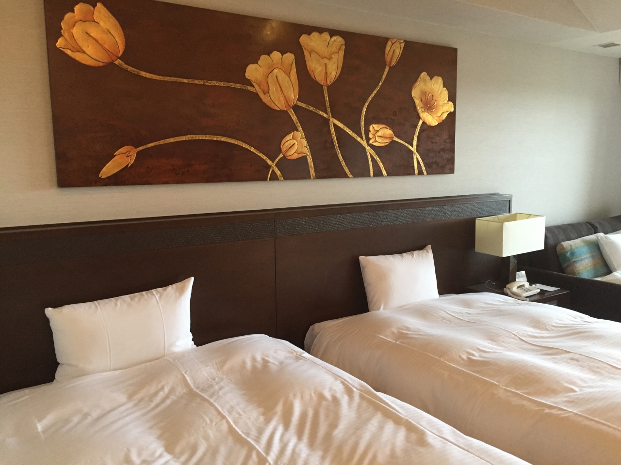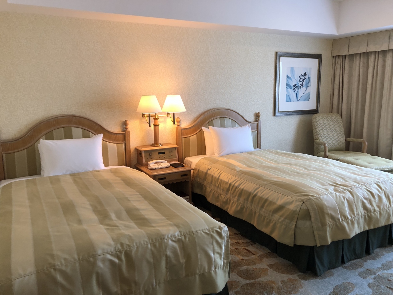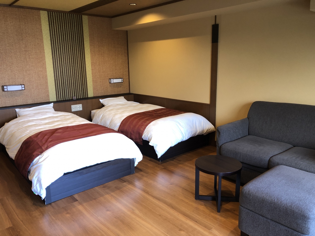 洋室ツインのお部屋で、狭く感じることもなくソファやベッドで寛げました。
