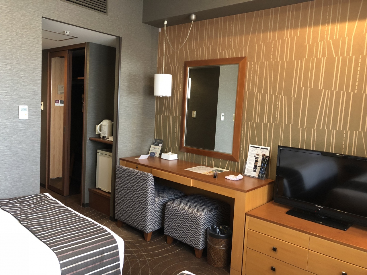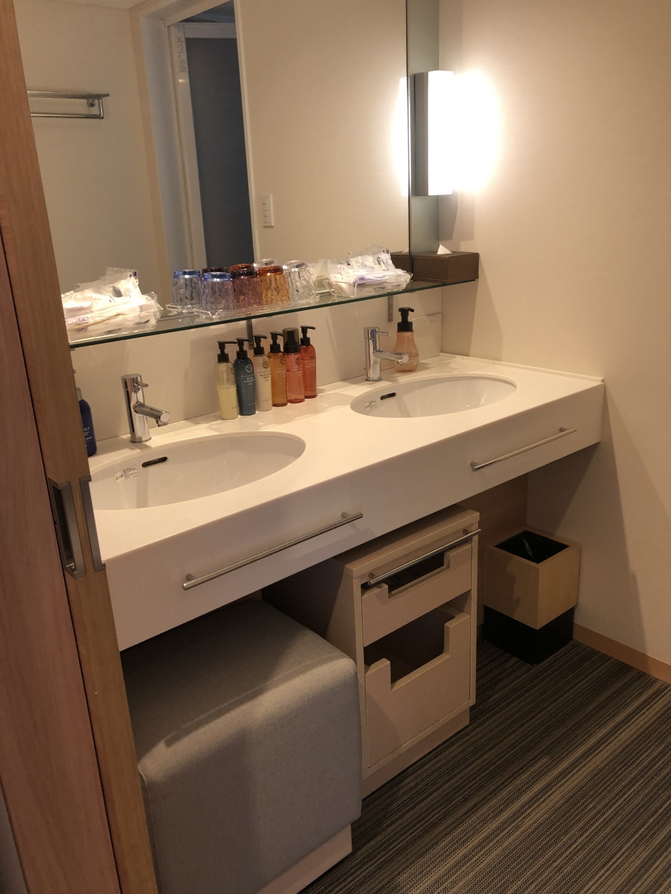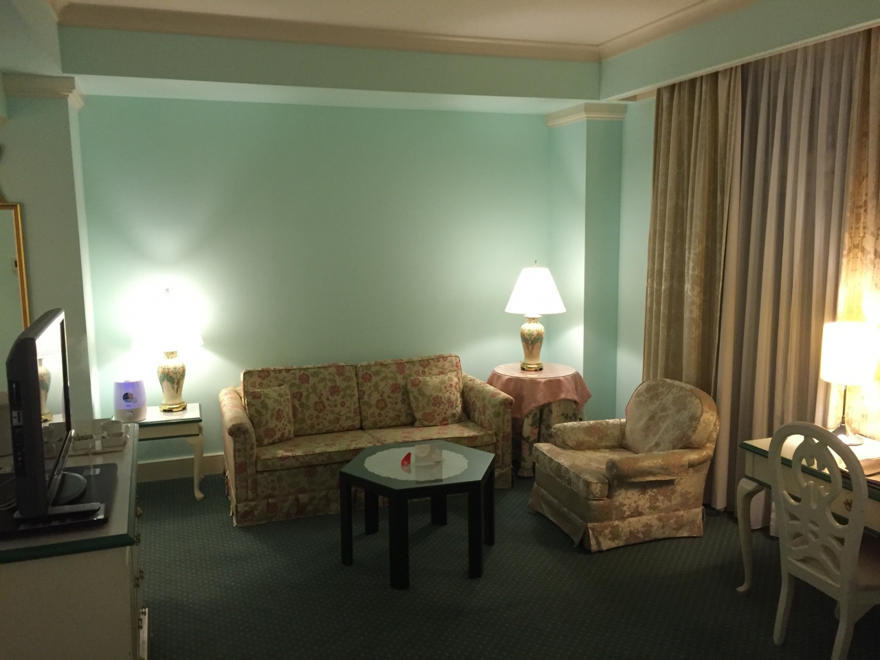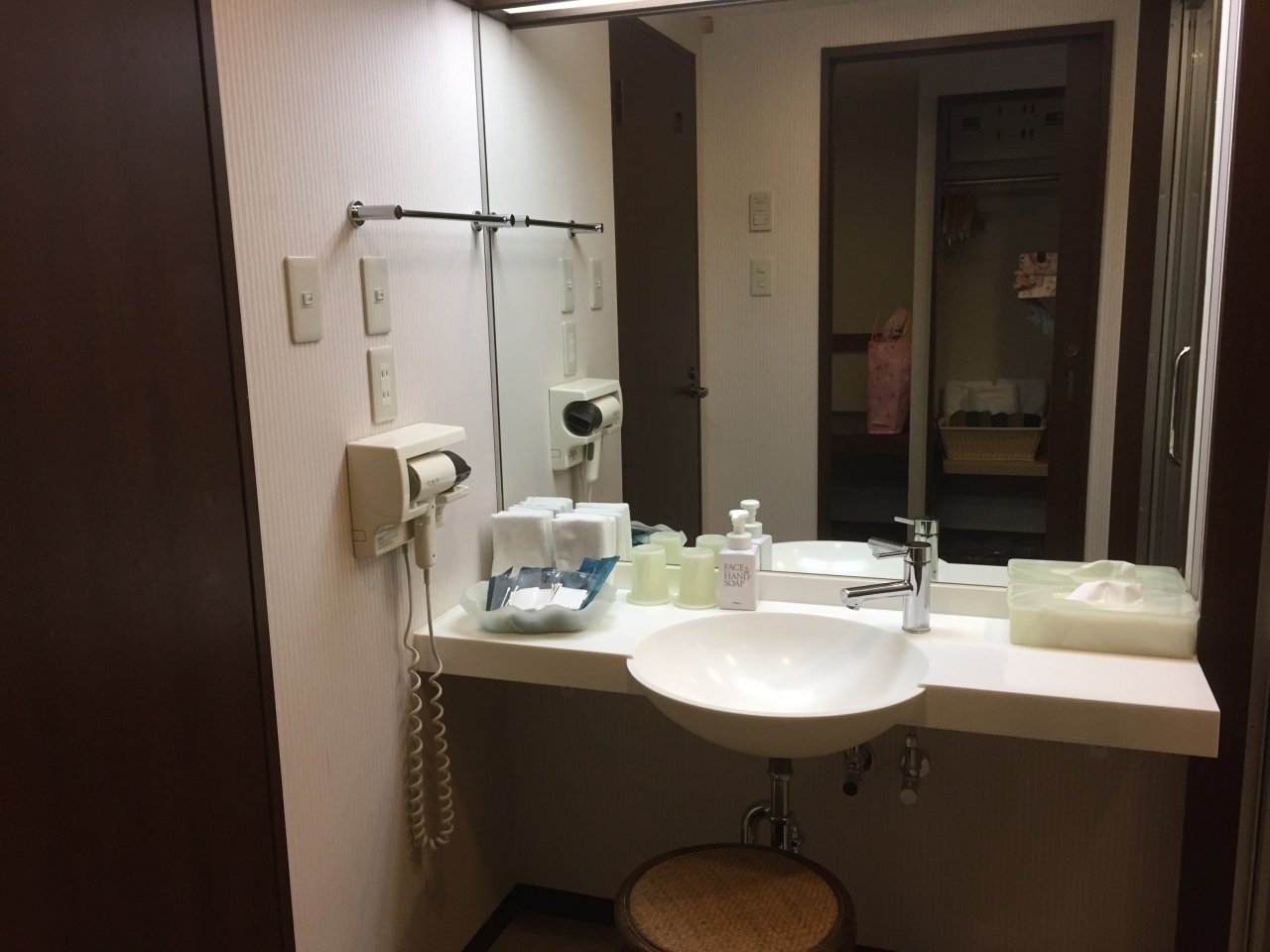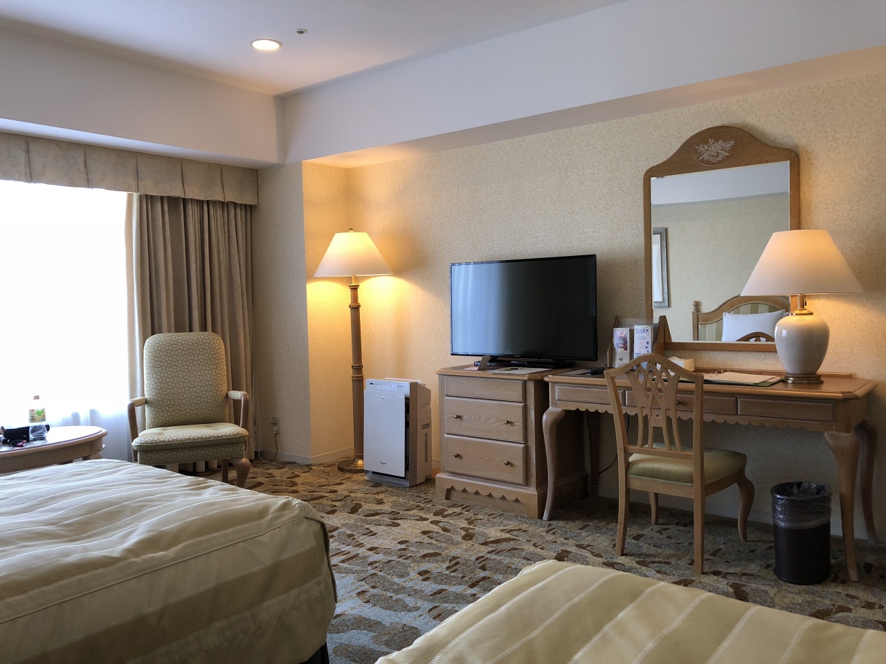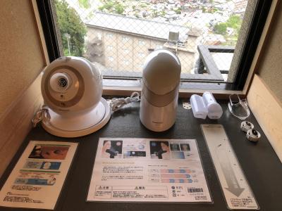 客室の備品の充実度も素晴らしく、Panasonicの空気清浄機や加湿器が設置され、イオンスチーマーは二台もありました。