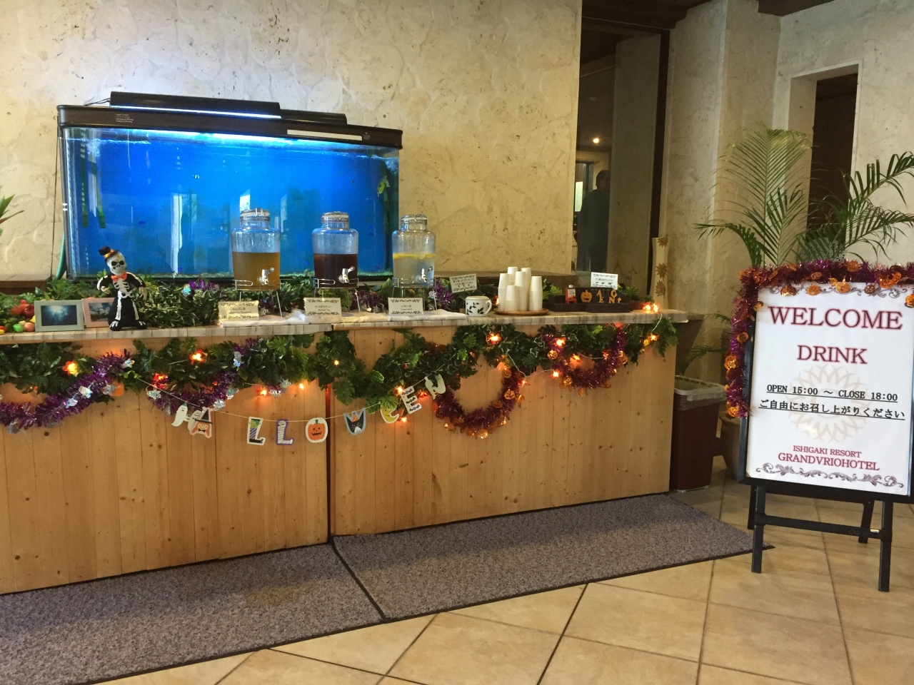 大浴場へ行く廊下には途中階段もありますが、沖縄民謡が流れ南国ムードのなかルンルン気分で歩けます。
