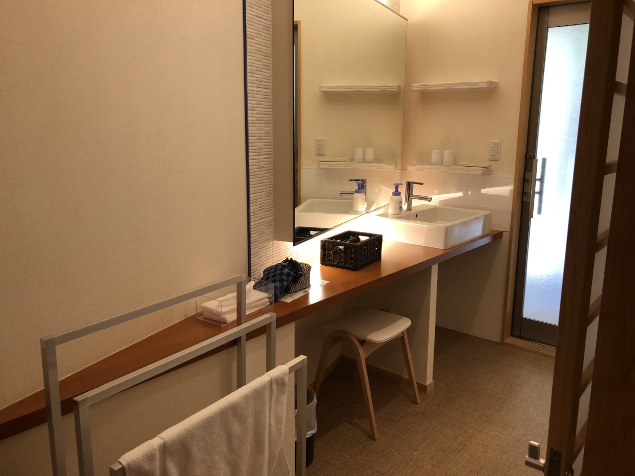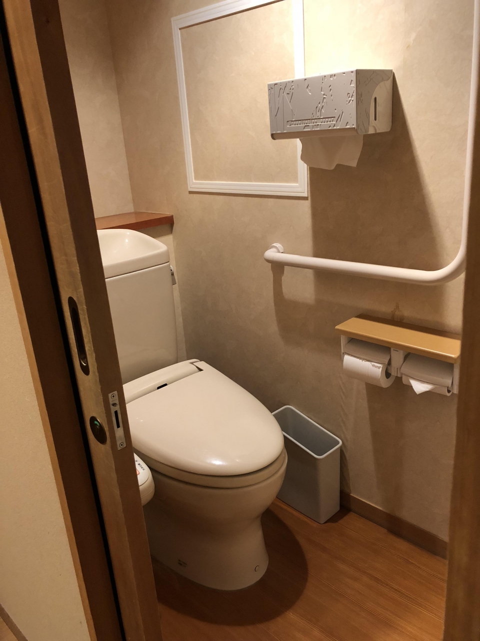 お部屋はすべて引き戸で、玄関以外の段差は見られませんでした。食事処と大浴場へ向かう石畳は車椅子では難しいかもしれません。