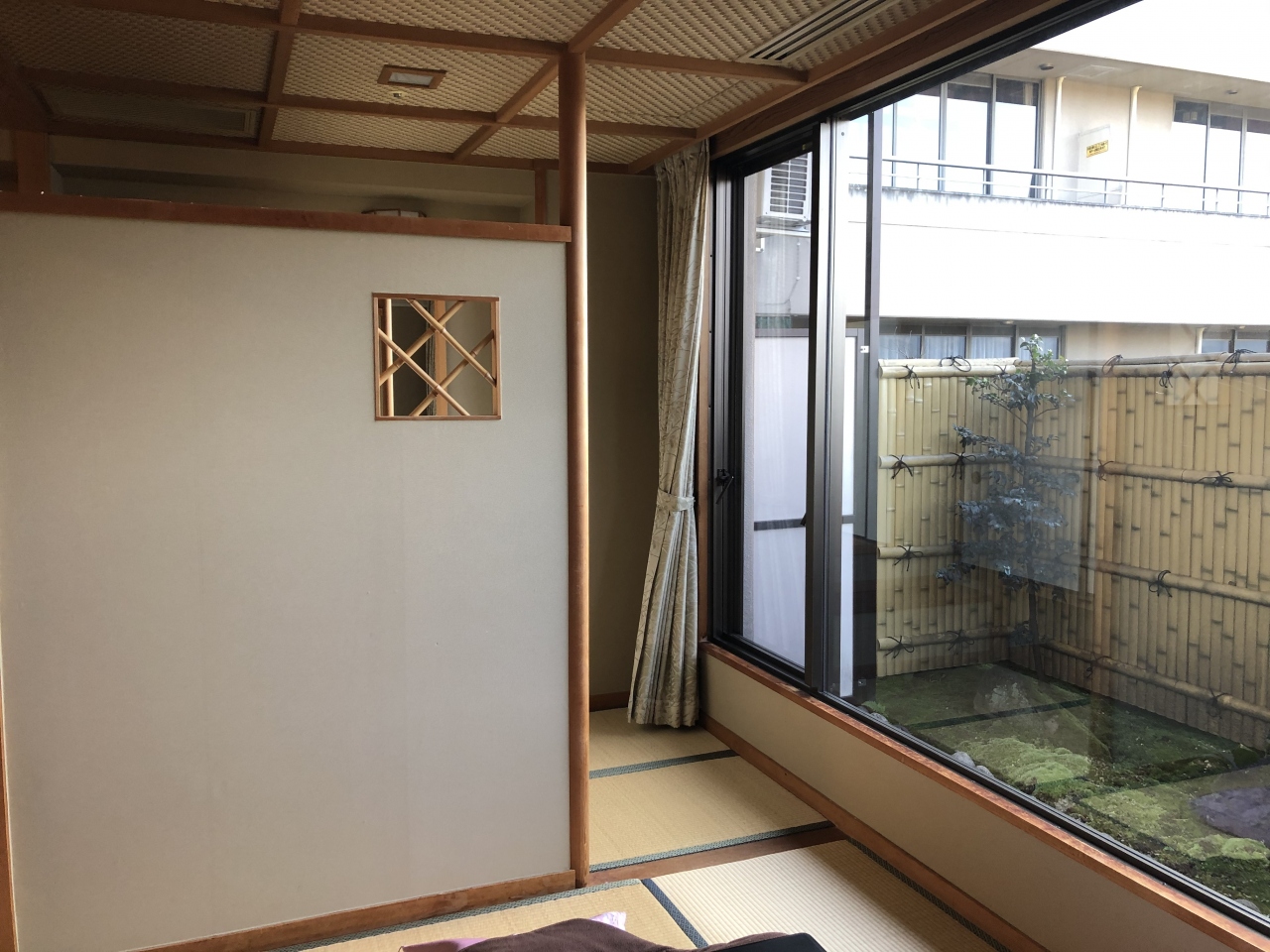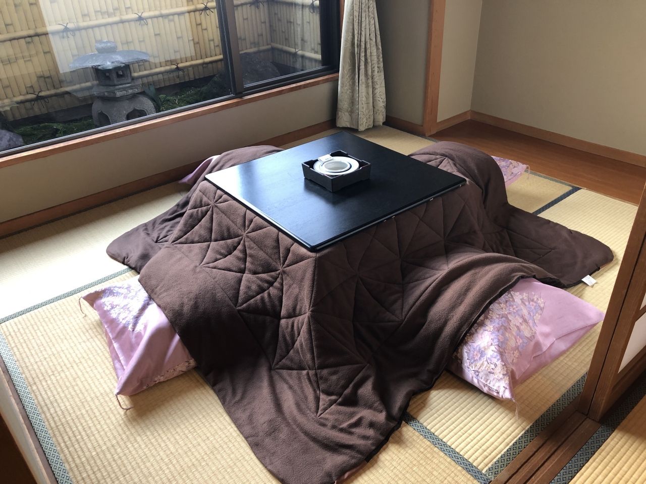 和室は中庭に面していて掘りごたつで寛げました。