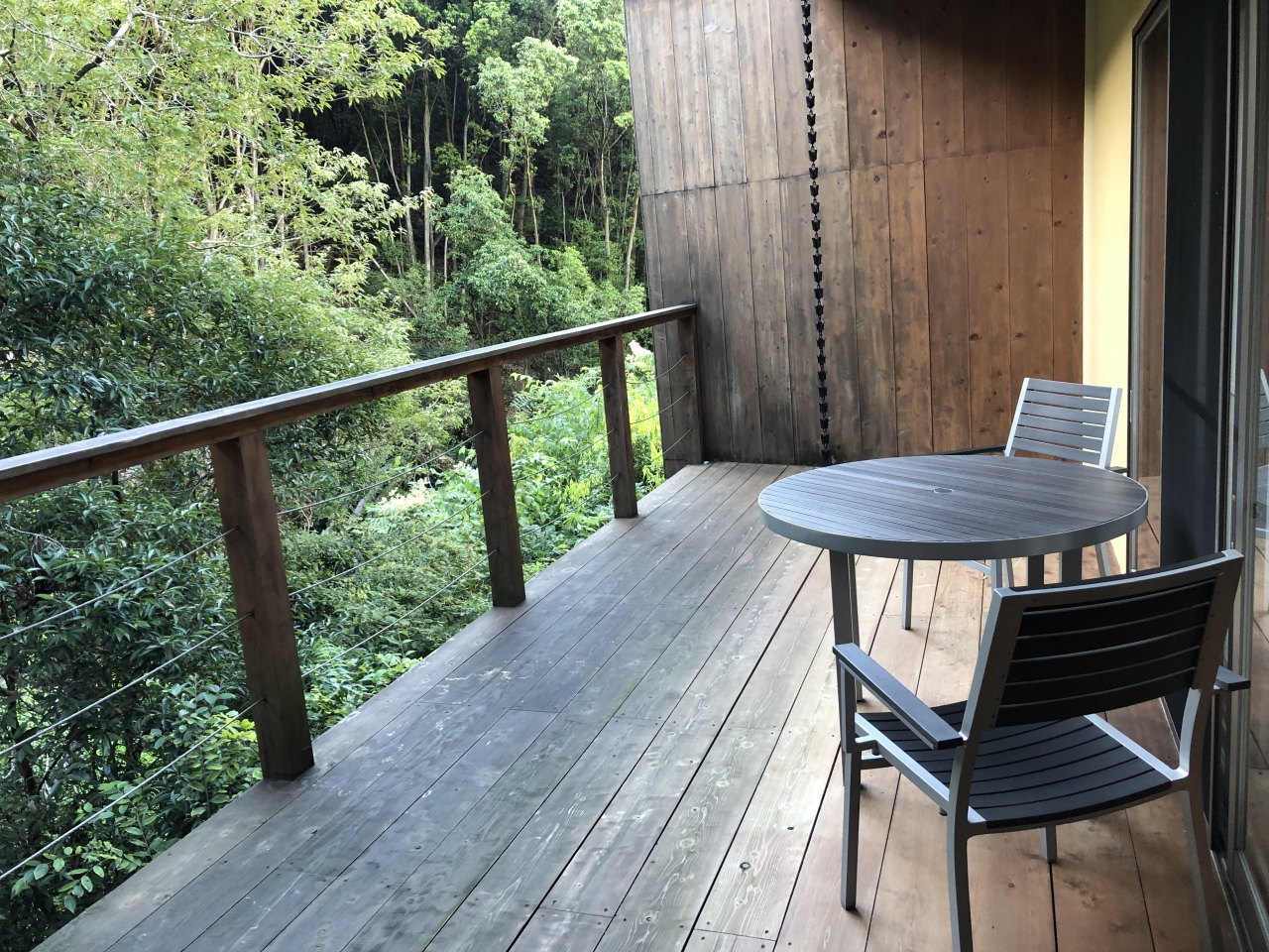 バルコニーのデイベッドに寝そべったり、部屋についてる露天風呂でのんびりと小鳥のさえずりを聞きながら景色を眺めたり、夫婦思い思いの時間を過ごしました。