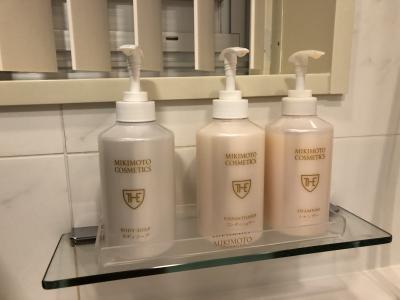 アメニティはミキモト。シャワーの水圧も十分です。バスソルトも良かった。