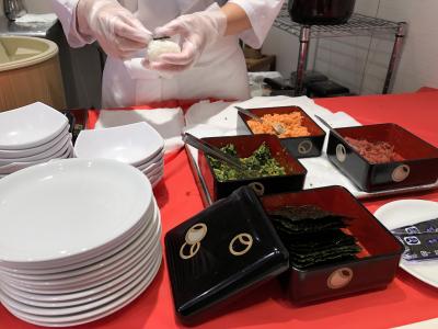 食事は朝夕ともにビュッフェですが、マスクと手袋着用でコロナ対策もバッチリ。
