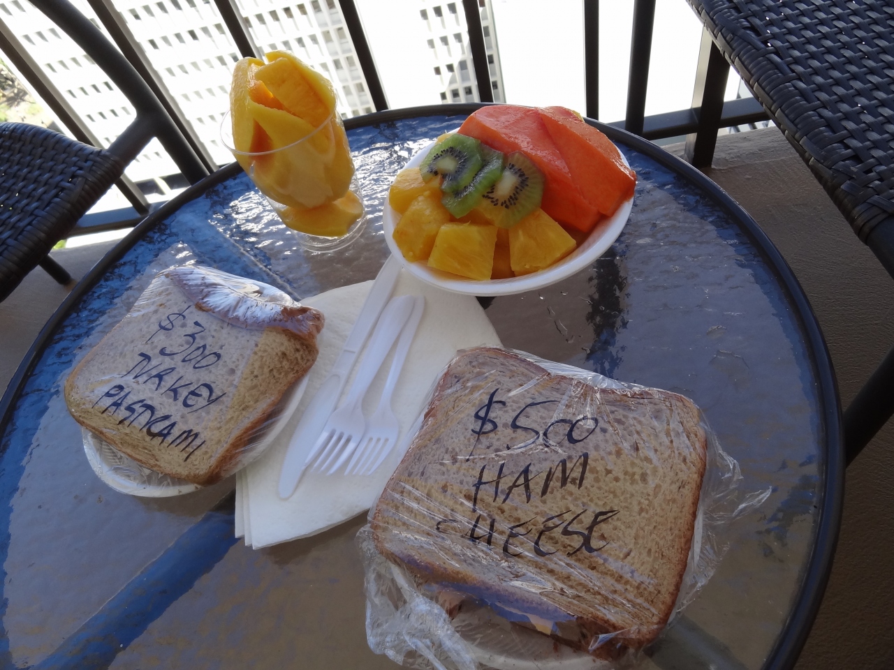 ちょうどマンゴーの季節だったので、マンゴーとフルーツ3種盛りとサンドイッチを買いました。マンゴーは今まで食べてたマンゴーは何だったんだって思うほど美味しかったです。3種盛りのパイナップルも絶品でした。