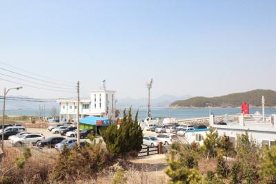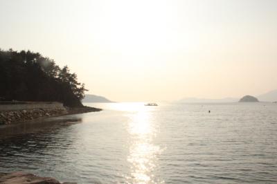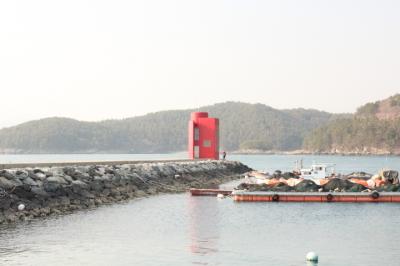 ゲストハウスのまん前の海の赤い灯台はおしゃれ