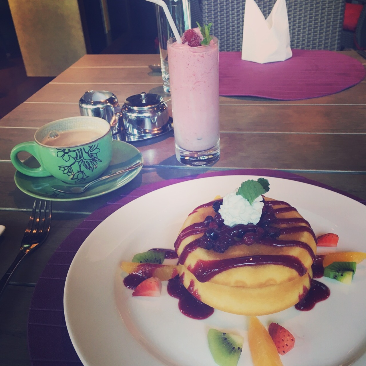 朝食のパンケーキが美味しいです!オーダー式の朝食です。和食などいくつか種類がありますが私は毎回パンケーキとフルーツスムージーをいただいてました。大きくないホテルなので混み合うこともなく朝からのんびりできてよかったです。