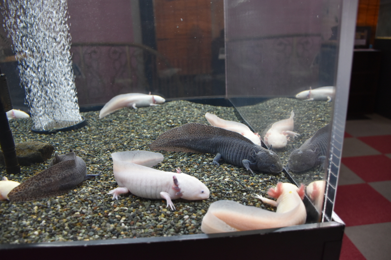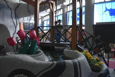 大きなウーパールーパーやどうぶつの森で見たことのある魚たちに子供は興奮しながら、私はフロアの作りの謎に頭を悩ませてw
